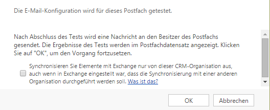 | 10. | Zum Testen eine Mail an die E-Mailadresse senden. Die Mail sollte max. nach ein paar Minuten im CRM erscheinen. |